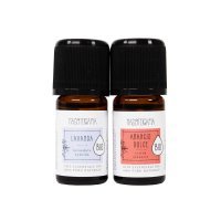 - Olio essenziale biologico di Lavanda ibrida (Lavandula hybrida): essenza erbacea e lievemente fiorita, in diffusione ha un'azione riequilibrante, dona relax e contrasta stress e nervosismo.