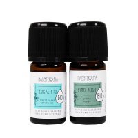 - Olio essenziale biologico di Eucalipto globulus (Eucalyptus globulus): in diffusione, soprattutto negli ambienti chiusi, purifica l'aria e favorisce la respirazione con le sue proprietà balsamiche.