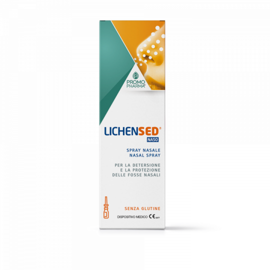 Lichensed® Spray Nasale è un Dispositivo Medico indicato per la detersione delle cavità nasali. La soluzione idrosalina al suo interno favorisce la decongestione della mucosa e facilita la respirazione. La presenza di Lichensed® assicura comfort e sollievo al naso irritato: grazie all’effetto barriera esplicato dalla componente polisaccaridica, il prodotto idrata e protegge la mucosa nasale. Gli oli essenziali di Eucalipto, Pino mugo e Tea tree, conferiscono a Lichensed® Spray Nasale un piacevole effetto balsamico e rinfrescante.