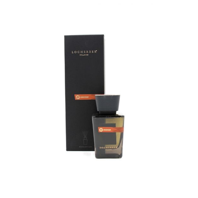 Locherber Milano diffusore d'ambiente 125 ml Aramaik. Collezione Skyline dedicata alla Milano dei grattacieli con vetri dal design contemporaneo e slanciato colore fumé realizzati da maestri vetrai italiani e tappo a lavorazione artigianale. Oggetto d'arredo elegante e esclusivo, modello brevettato, con la sua silhouette interpreta con eleganza il minimalismo e lo stile dalla città della moda e del design.