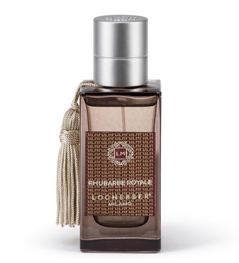 Rhubarbae Royale: pompelmo, rabarbaro, gelsomino, bacche rosse, ginepro, ciclamino, legno di cedro, muschio bianco.