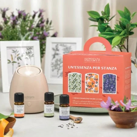 - Olio essenziale biologico di Arancio Dolce: caratterizzato dalla nota agrumata e dolce. Indicato in salotto e negli spazi condivisi per le proprietà rilassanti e la capacità di purificare l'ambiente.
