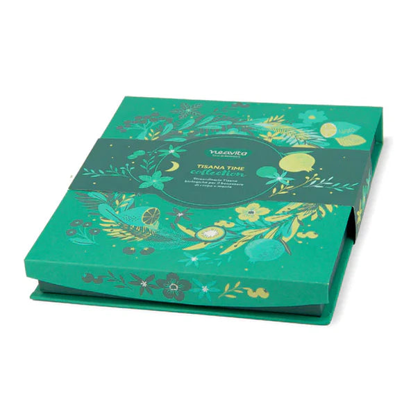 Contiene straordinarie tisane alle erbe e frutti, in confezione di carta decorata.