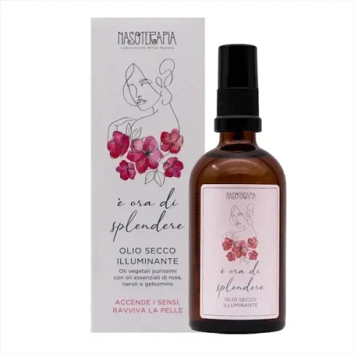 È Ora di Splendere" di Nasoterapia è un olio secco ad azione illuminante e lenitiva: per tutti i tipi di pelle.