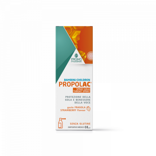 PropolAc® spray gola bambini è un Dispositivo Medico indicato per il trattamento sintomatico di tutti gli stati irritativi della gola associati a bruciore, dolore e sensibilità alla deglutizione; la presenza di estratto di Erisimo aiuta a ripristinare il normale tono della voce, mentre l’estratto di Altea, ricco di mucillagini, protegge la mucosa del cavo orale dagli agenti irritativi esterni. L’olio essenziale di Limone garantisce un effetto rinfrescante, mentre l’estratto secco di Propoli e l’Argento colloidale preservano la soluzione contribuendo a contrastare le aggressioni microbiche esterne.